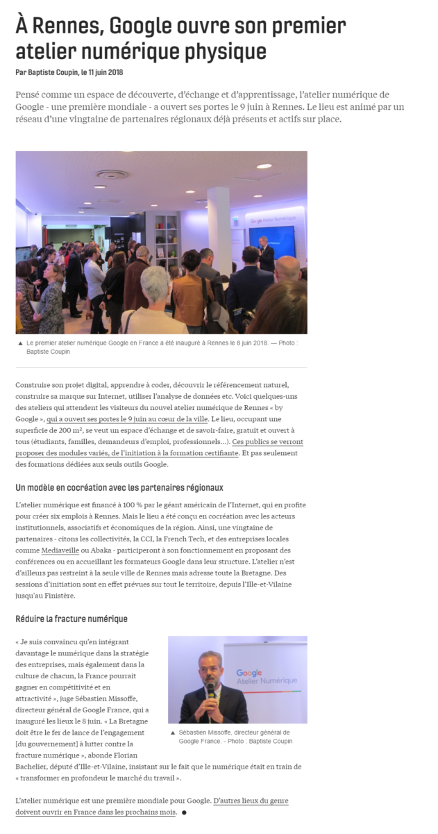 Le Journal des Entreprises a publié un article sur l’Atelier Numérique de Google dont Mediaveille est partenaire.